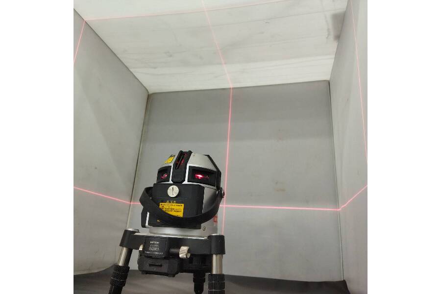 ・4方向の縦ラインが同時に照射可能です。屋内の間仕切り作業はもちろん、付属の受光器を使用すれば、屋外での水盛り遣り方作業での“おおがね”出し作業が簡単に出来ます。