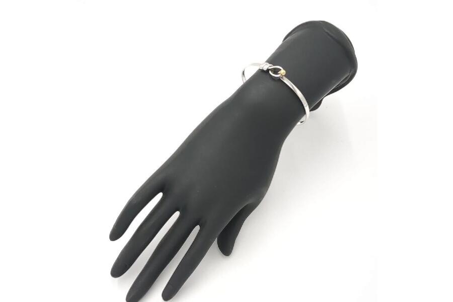 「SV925/K18」と記される通り、本製品はシルバー925(クオリティの高いスターリングシルバー)と18金が組み合わされた美しい輝きを持った素材で作られています。シルバーの清潔感と18金の上品な艶感が調和し、まさにTiffanyならではのエレガントな仕上がりとなっています。