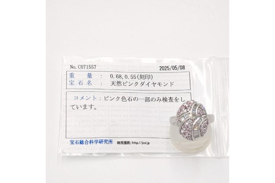✓ 天然ピンクダイヤモンド(0.68ct)と洗練された脇石(0.55ct)のバランスの良いデザイン