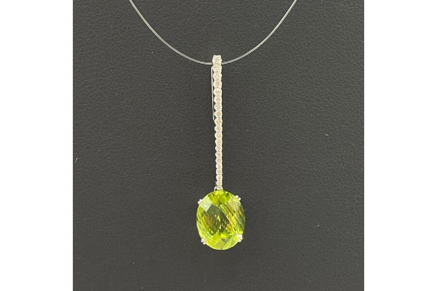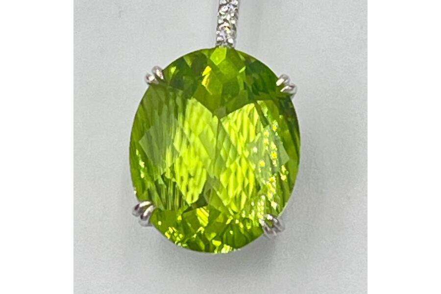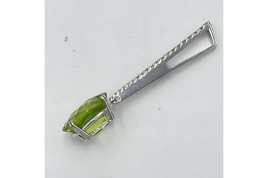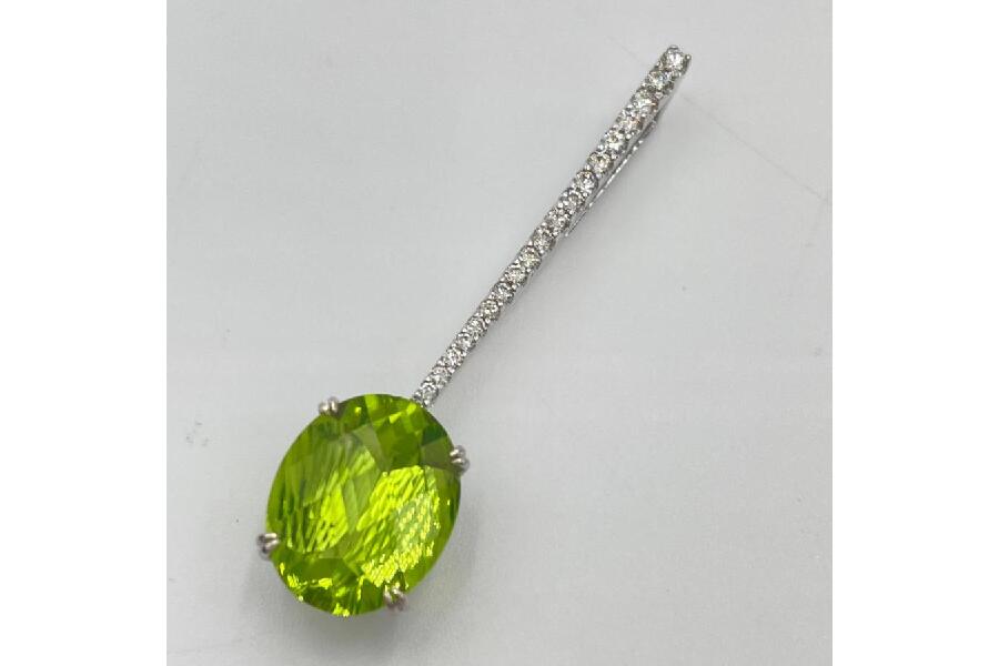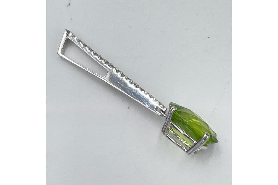 ペンダント トップは、k18WGホワイトゴールドの高級感と、ペリドットおよびメレダイヤの美しい輝きが融合した魅力的なジュエリーです。