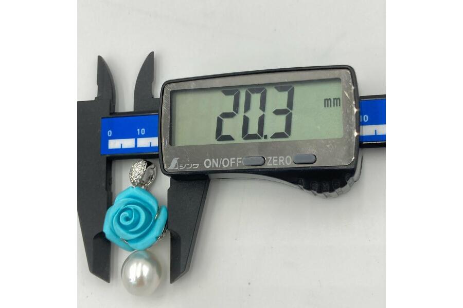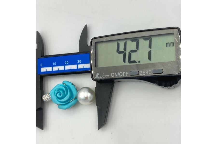 軽量ながら存在感のある11.48gという絶妙なバランスは、首元に華やかさを添えます。約L42 x W20mmのサイズ感は、シンプルな首元にアクセントを加え、普段のファッションを上品に演出します。トルコ石のブルーとパールの輝きが神秘的な美しさを引き立てています。