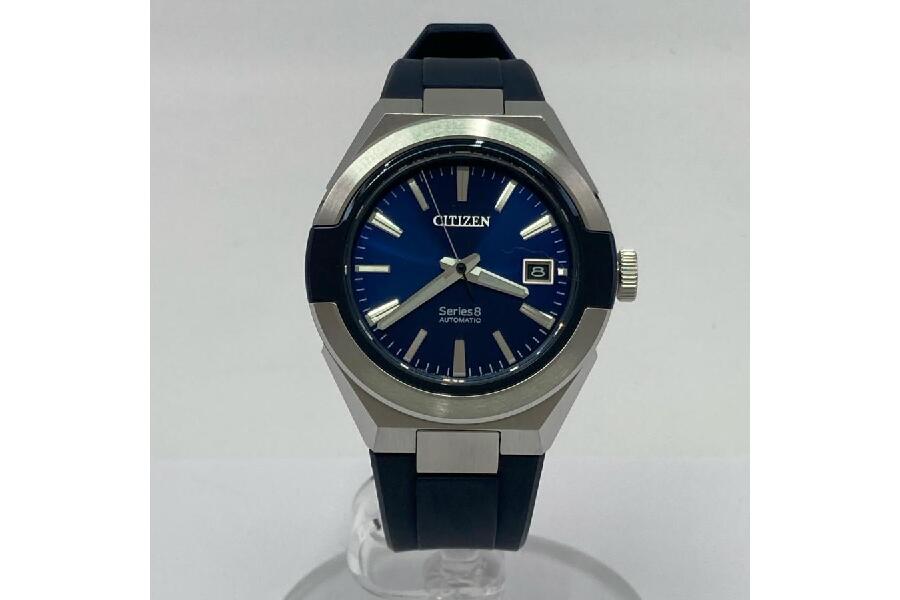 CITIZENの「SERIES8 シチズン」NA1005-17L0950-S125723は、精度の高い自動巻きムーブメントを搭載し、日差が+10秒程度という安定した実績を誇ります。樹脂ベルトは多少の使用感はあるものの、ケース部分の小スレやダメージは目立たず、全体的にバランスの取れた良好なコンディションです。歴史と技術に裏打ちされたシチズンの腕時計は、時計愛好家だけでなく、一般ユーザーにも安心してお使いいただける逸品と言えるでしょう。