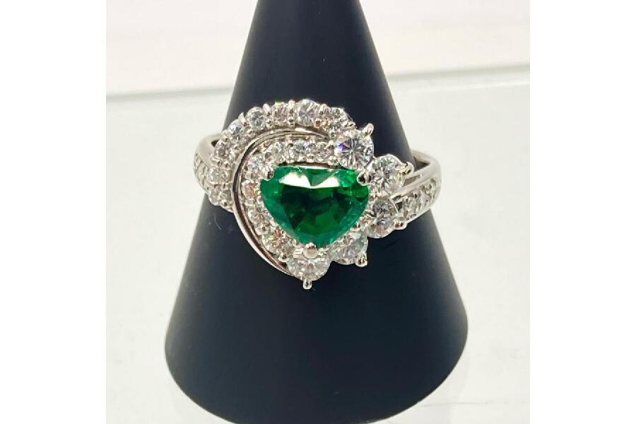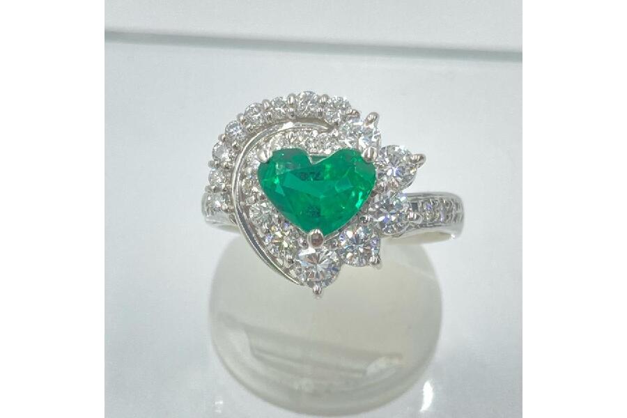 エメラルドをハート型にカットするのは、実は非常に難易度が高く、希少な存在。