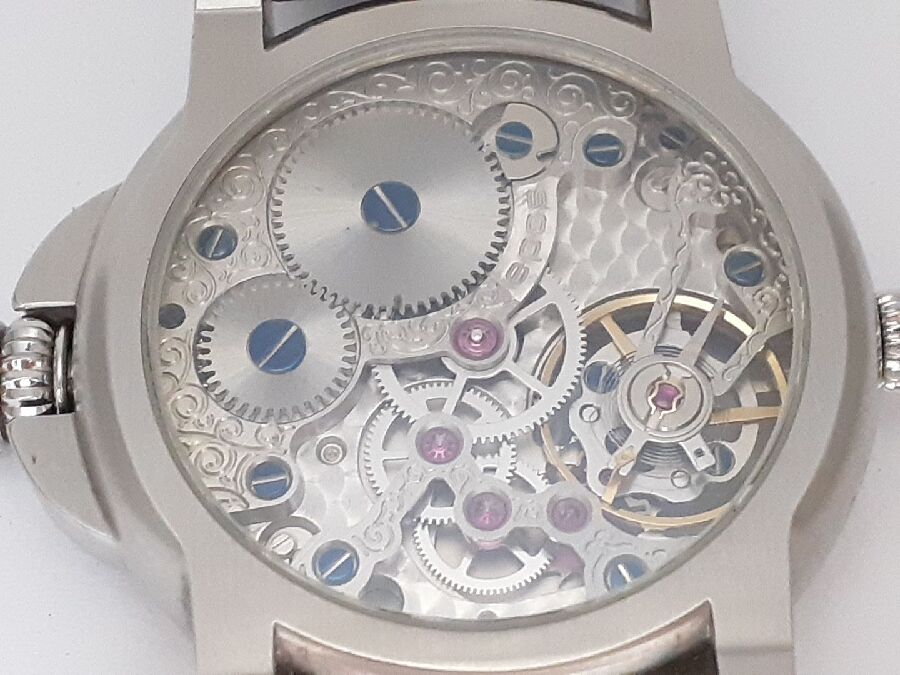 状態 風防に傷なし。本体、尾錠に少しの傷。向かって左側のリューズを緩めると本体が取れ懐中時計のような状態になります。日差は-9秒ほど。ベルト交換済_尾状は純正です。