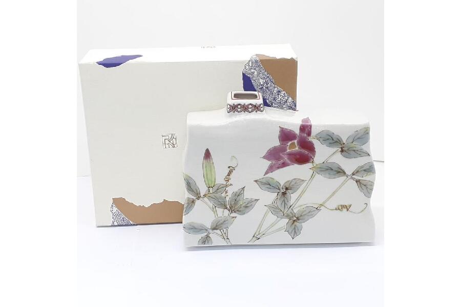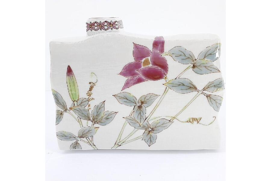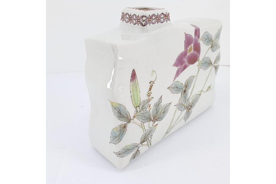 九谷焼 平野由佳作 一輪挿し 鉄仙 高さ約12.5cm 横約15cm 底4.5cm 箱付き 入荷しました♪