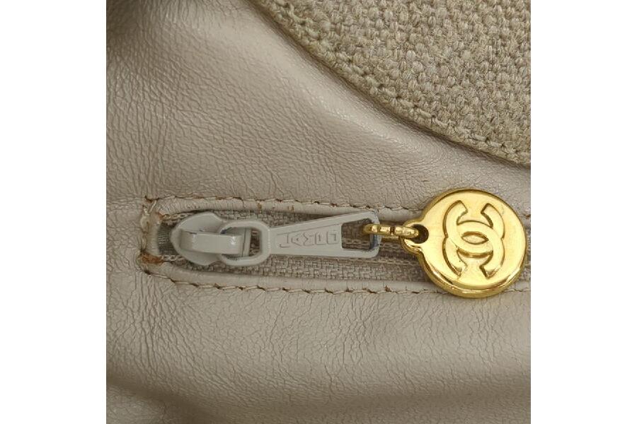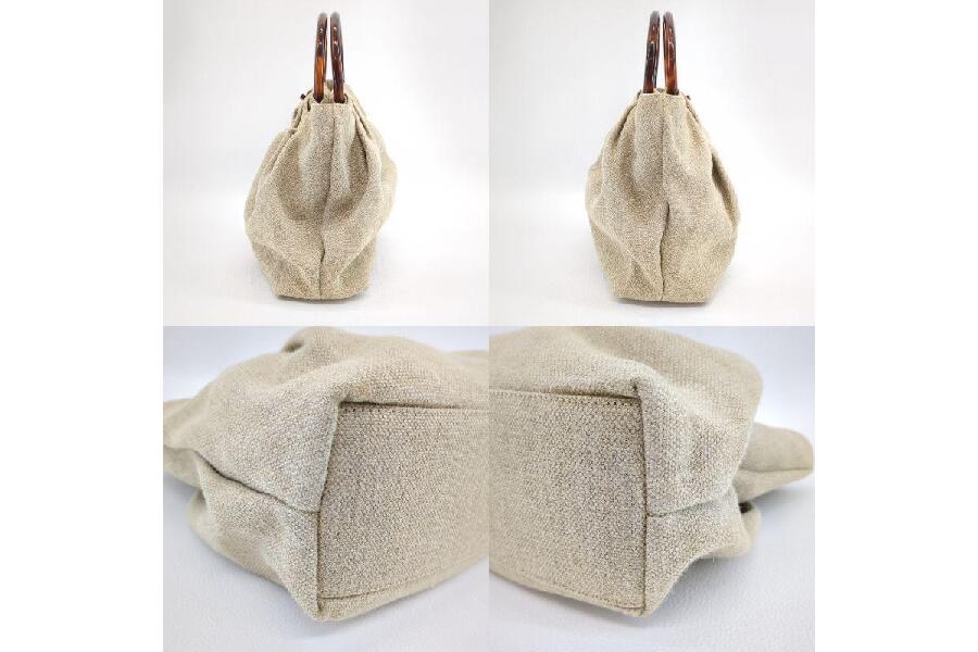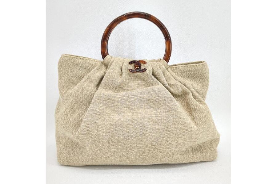 シャネル ハンドバッグ リネン べっ甲調ハンドル ベージュ レディース 中古 ビンテージ CHANEL 入荷しました♪
