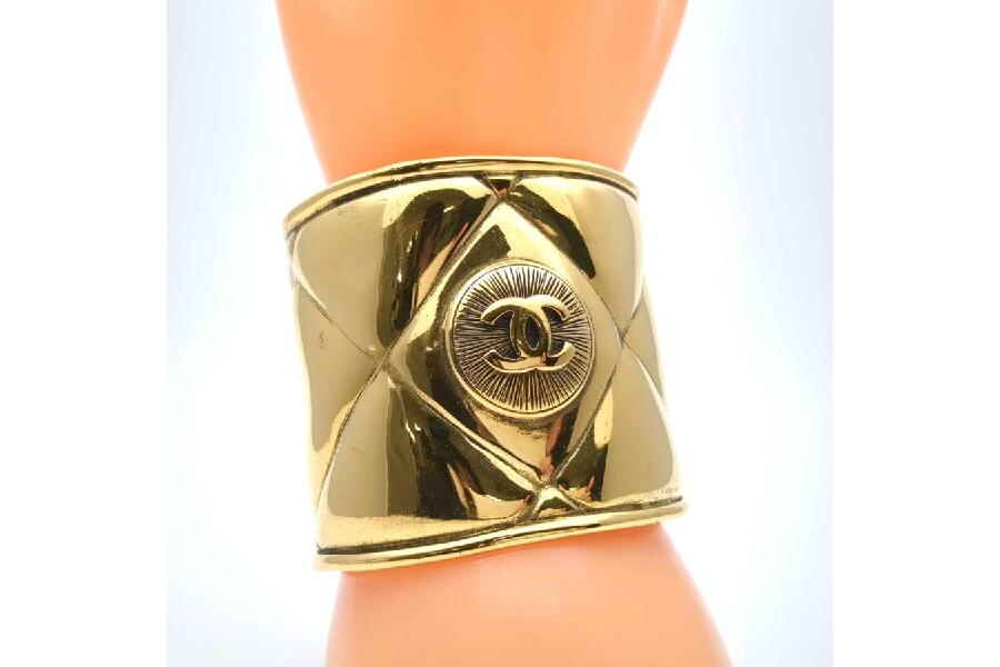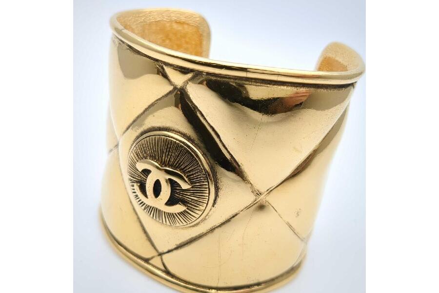 今回ご紹介するのは、そんなシャネルのヴィンテージマトラッセバングルです。新品では味わえない、ゴールドカラーの輝きと歴史を感じさせる佇まいが魅力的な一点です。