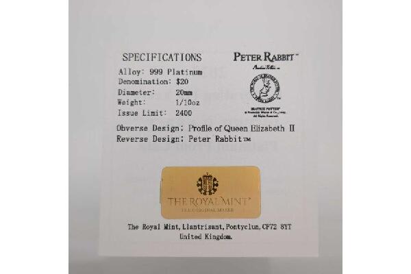 ・商品名:ピーターラビット120周年記念1/10oz純プラチナコイントップ