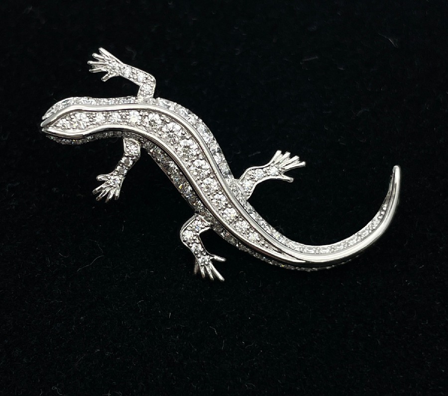 こちらはすでに販売済ですが、パヴェダイヤが美しいサラマンダーのブローチです。