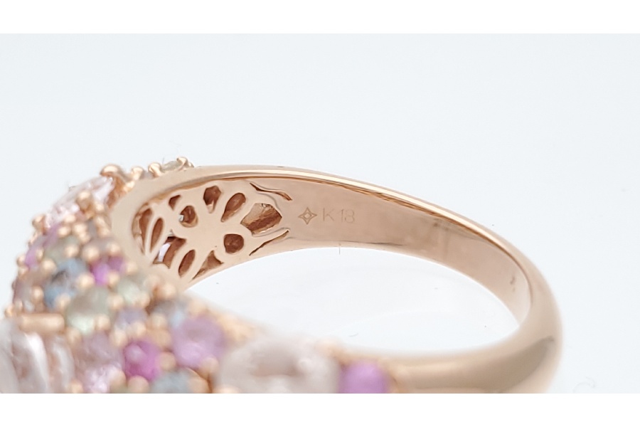 宝石:モルガナイト0.90ct、サファイア0.95ct、ガーネット0.30ct、ムーンストーン0.15ct