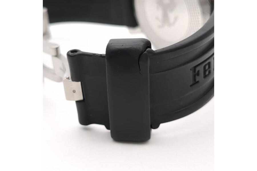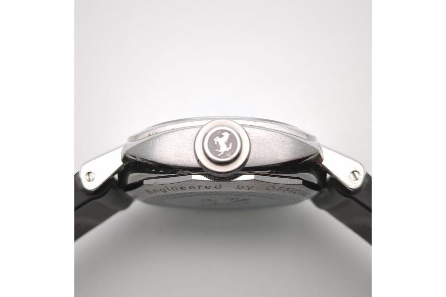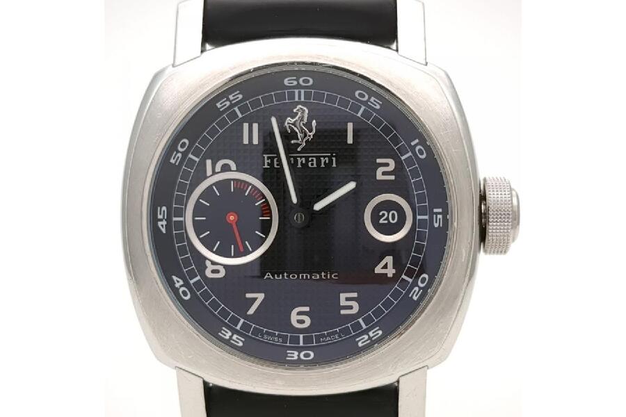 文字盤はブラックで、フェラーリの象徴的なカラーを反映しており、スポーティーかつ高級感を演出しています。