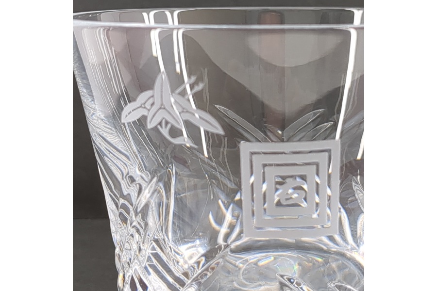 グラス底面にはバカラ社の「紋」にはデキャンタとグラスがデザインされています。