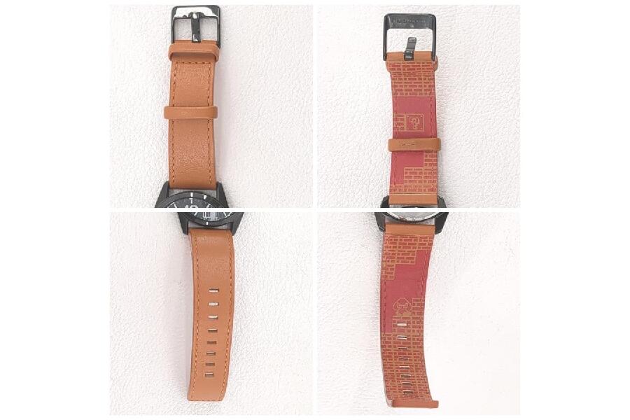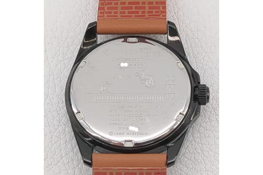 使用頻度が「数回」とのことで、比較的綺麗な状態ながらも、一部のディテールには使用感が見受けられます。具体的には、裏蓋に細かいキズがあり、また腕時計ケース(マリオの土管)の一部にヨゴレが確認できるとの点です。これらの点は画像でしっかりと確認いただけるため、実物を購入される際の参考情報としてご活用いただけます。