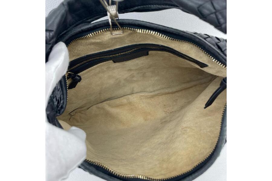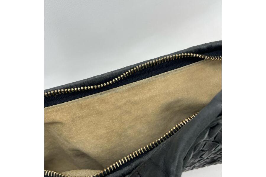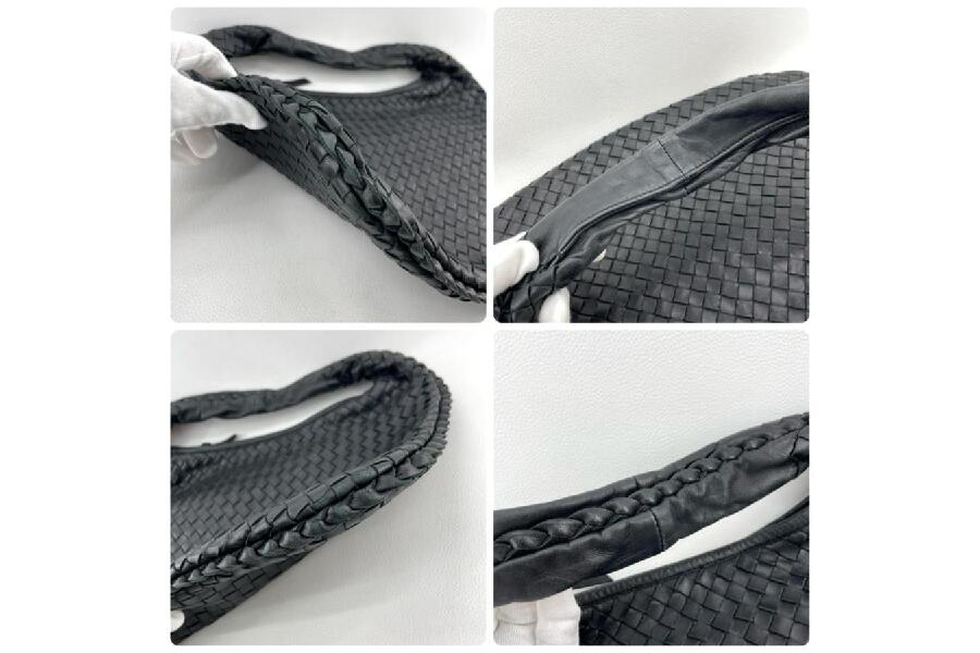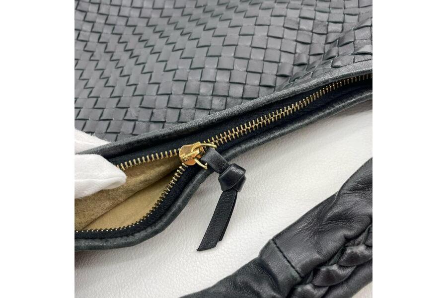 BOTTEGA VENETAならではの「イントレチャート」編み込みのディテールは、ブランドの象徴とも言える美しいデザイン。下記に、このバッグの具体的な特徴をご紹介します。