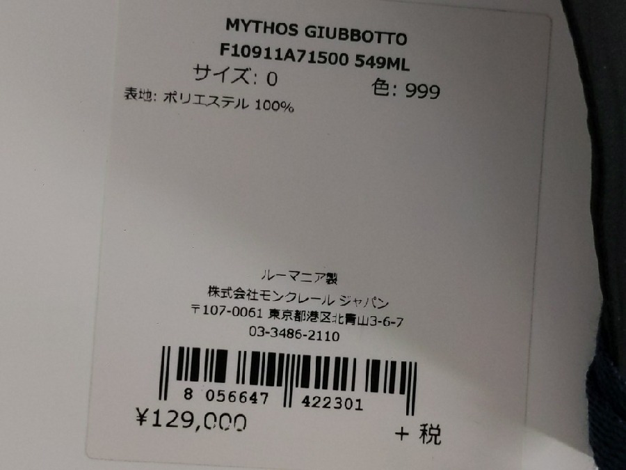 MONCLERのビニールも、買取時に、しっかりお持込み頂いた、保存状態の良いお品です。