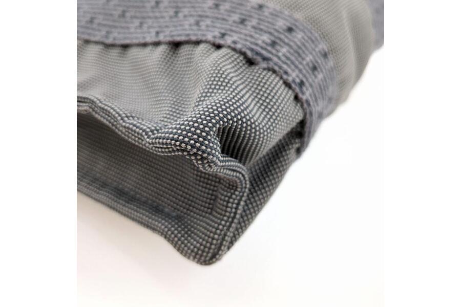 指定されたモデルは、グレーのキャンバス素材で、サイズは約W26cm*H30cm*D5cm、ショルダーストラップは約44-75cmとなっており、男女問わず使いやすいデザインです