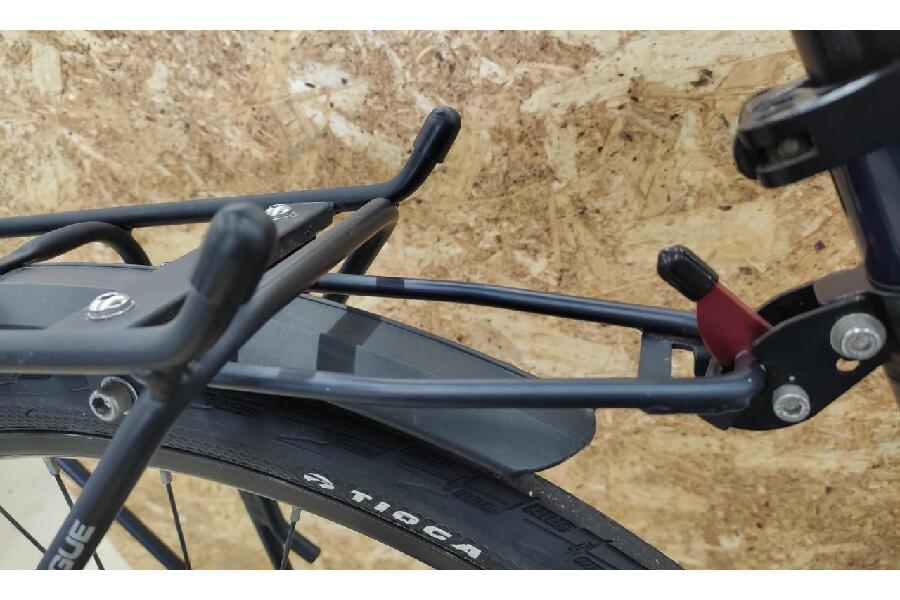 リアキャリアもワンプッシュで折り畳め、さらにリアキャリアが折り畳み時にスタンドになるという画期的な仕組みになっています。