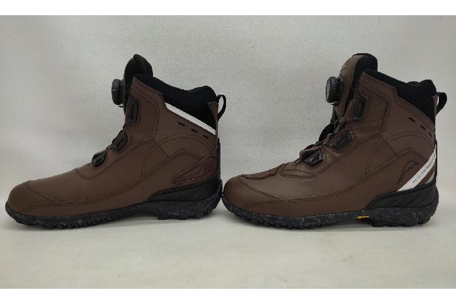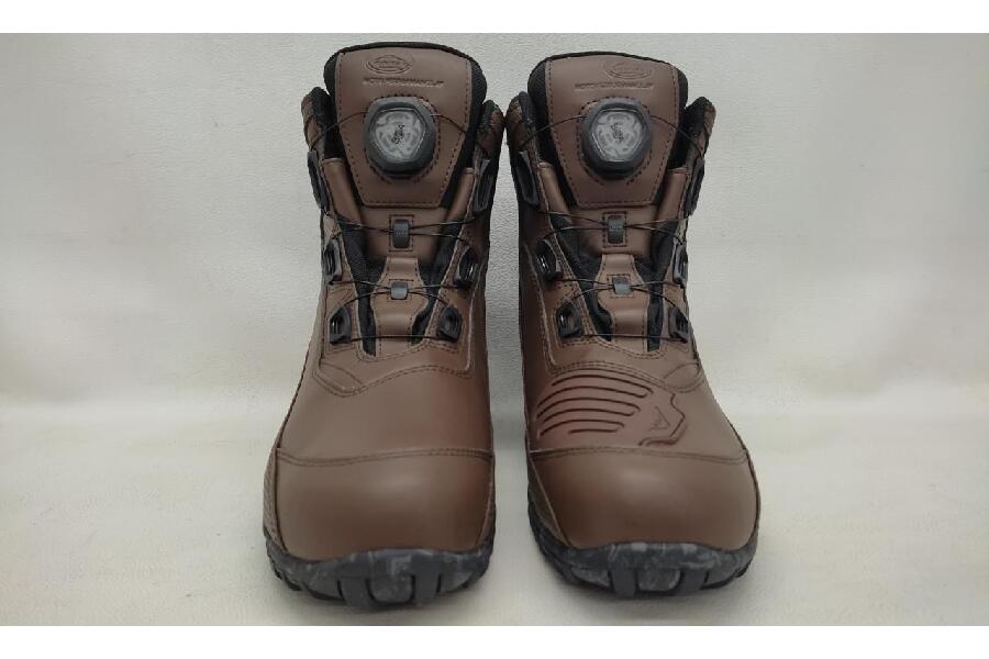 ミドル丈防水ライディングシューズです。アッパーパーツにエンボス加工を、ディンプルレザーや裏革をあしらい立体感のある仕上がりに。