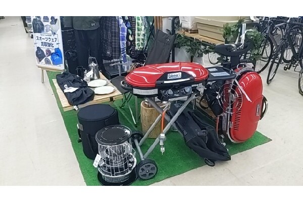 当店には他にもキャンプ用品のコンロやランタン、テーブル、チェア、釣り具、自転車、自転車用品など様々なスポーツ用品の他、日曜大工でもお使いになれる工具なども取り扱っております。お気軽にご来店ください。