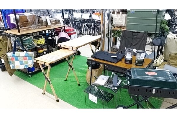 当店には他にもキャンプ用品のコンロやランタン、テーブル、チェア、釣り具、自転車、自転車用品など様々なスポーツ用品の他、日曜大工でもお使いになれる工具なども取り扱っております。お気軽にご来店ください。