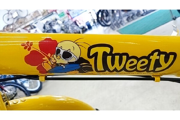 今回は各所にtweetyのプリントが施された折り畳み自転車をご紹介いたします。