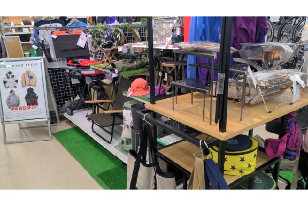 当店には他にもキャンプ用品のコンロやランタン、テーブル、チェア、釣り具、自転車、自転車用品など様々なスポーツ用品の他、日曜大工でもお使いになれる工具なども取り扱っております。お気軽にご来店ください。