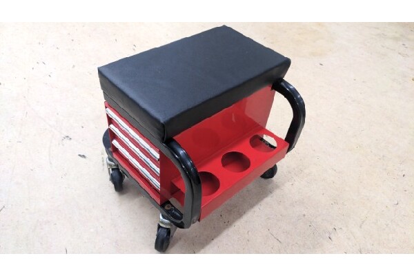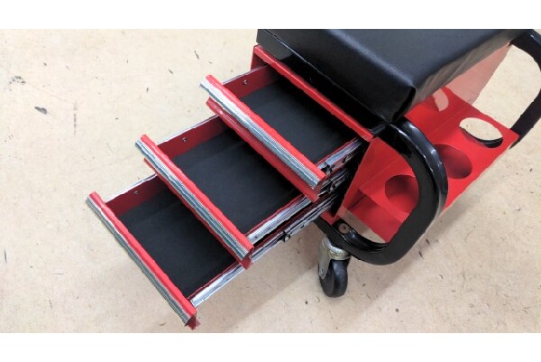 3段の引き出しも付いていてツールボックスとしても使えるお勧めな作業椅子です。
