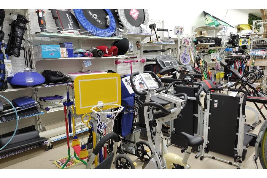 当店では、自転車、キャンプ用品、フィットネス用品、工具の