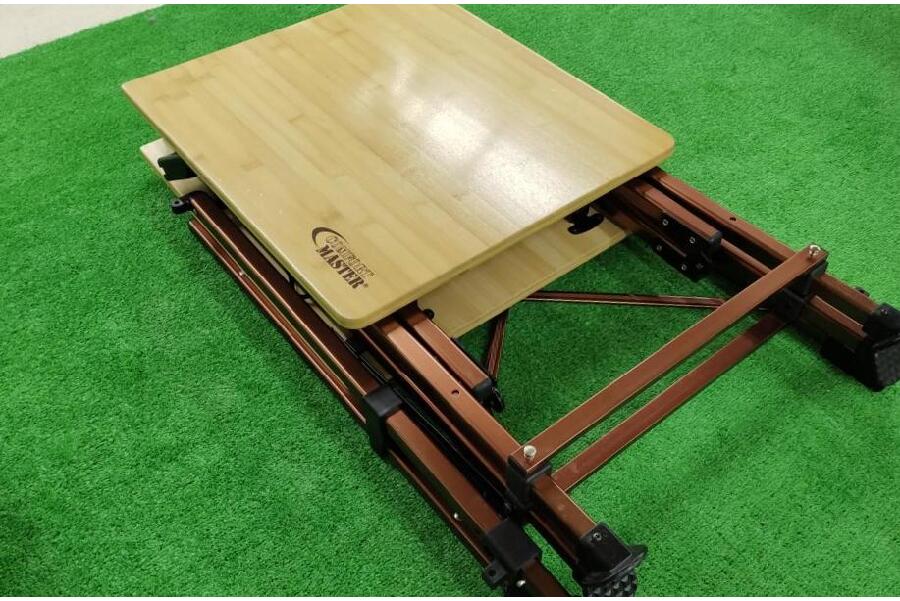 こちらは折り畳んだ状態です、ここから天板を開いていきます。同時に脚も開いて来る仕様になっているので後は脚を伸ばしてロックすれがOKです。
