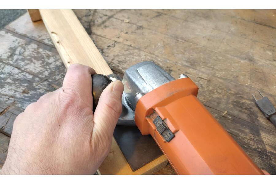 右側の四角いところを当てて面取りをします。