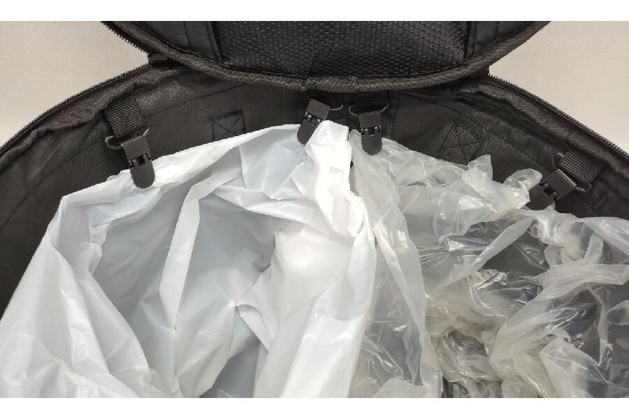 中にフックが8カ所あり、2枚のゴミ袋を同時に取り付けられますのでゴミの分別ができます。