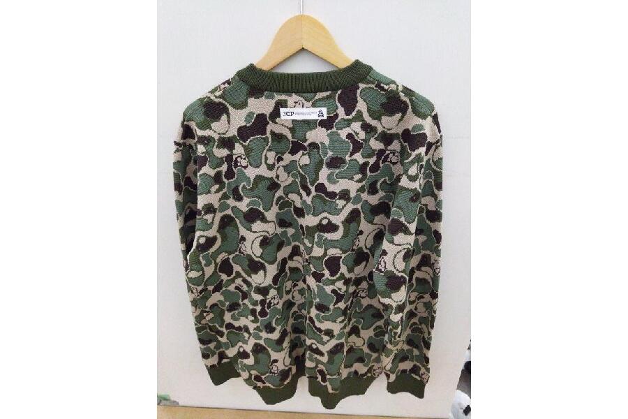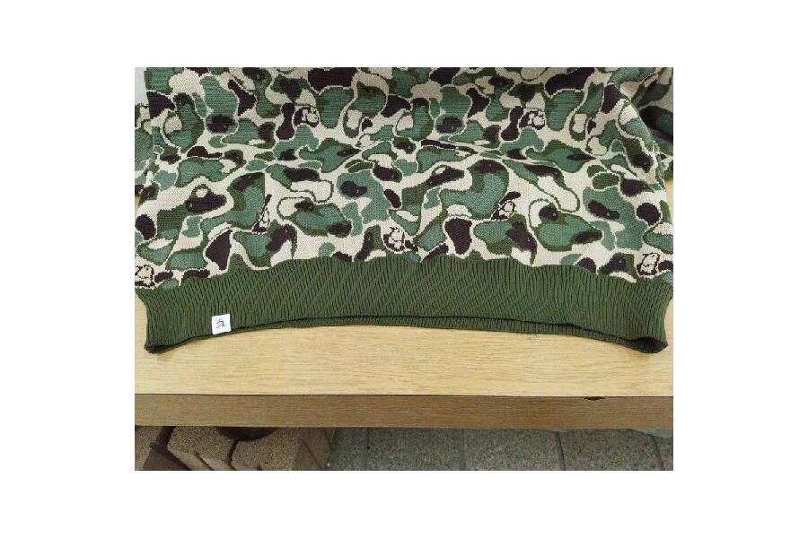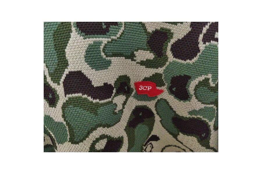 このセーターは、ゴルフコースでの使用を想定したデザインで、カモフラージュ柄のジャカード織りが特徴です。