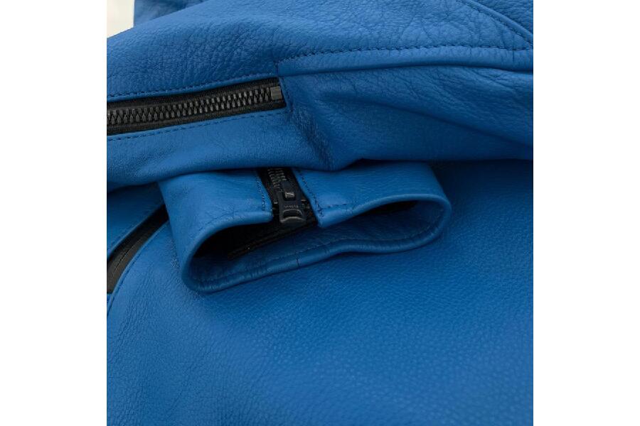 これらの数値は、アクティブなシーンや日常のカジュアルスタイルにおいて、快適でありながらもしっかりとしたシルエットを提供するために設計されています。また、鮮やかなブルーカラーは視認性が高く、シーンを選ばずコーディネートのアクセントとしても大変魅力的です。