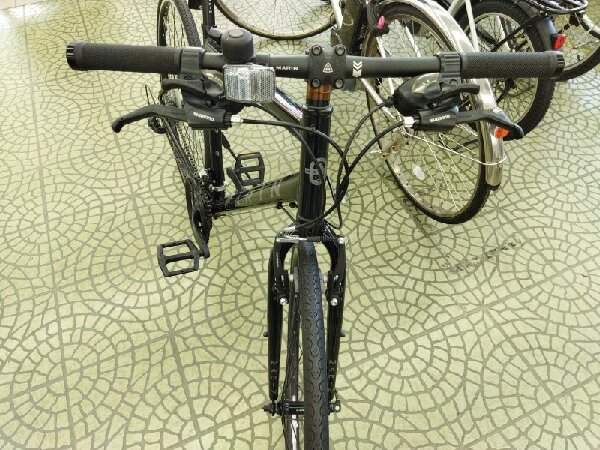 フロントフォークにダボ穴があり、バスケットの取り付けもできます。